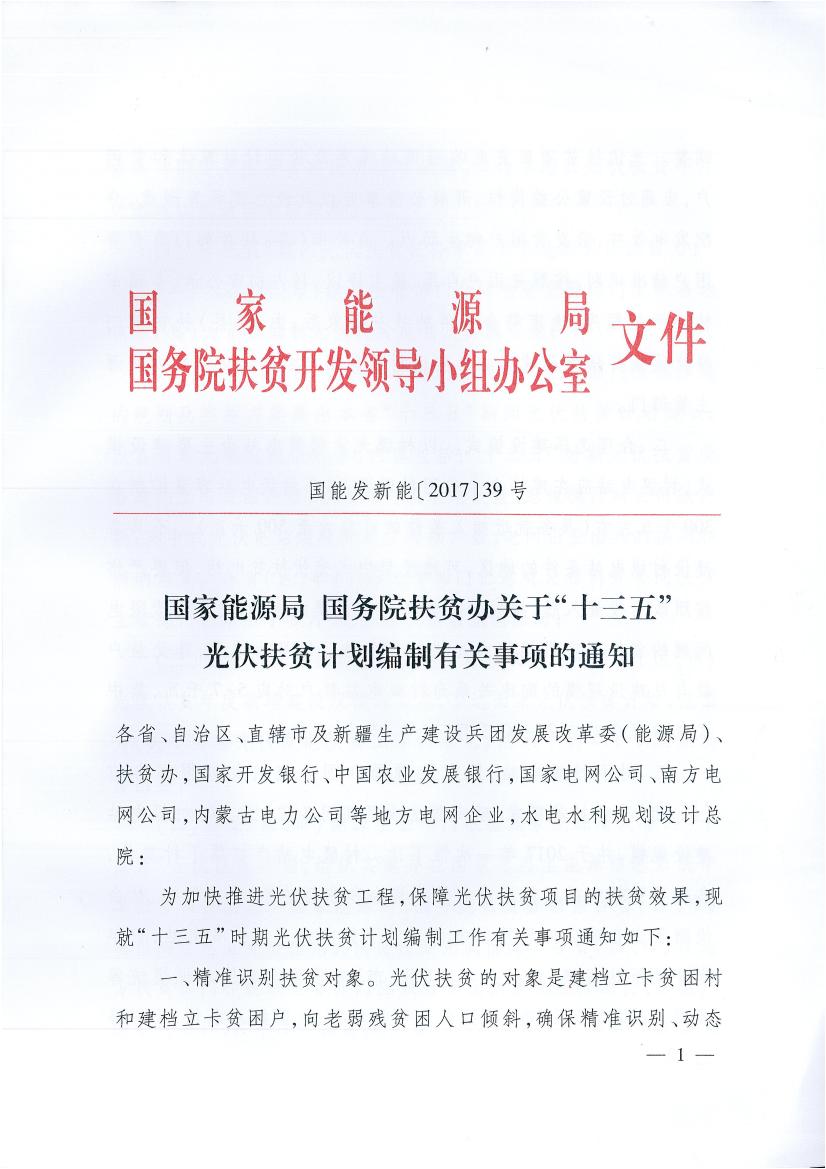國家能源局、扶貧辦關(guān)于“十三五”光伏扶貧計劃編制有關(guān)事項的通知